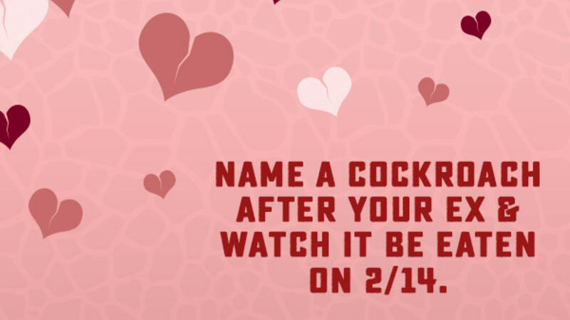 A Texas zoo is allowing jilted Valentine's Day revelers to name a cockroach or a rat after their ex -- and then see it fed to a larger animal.