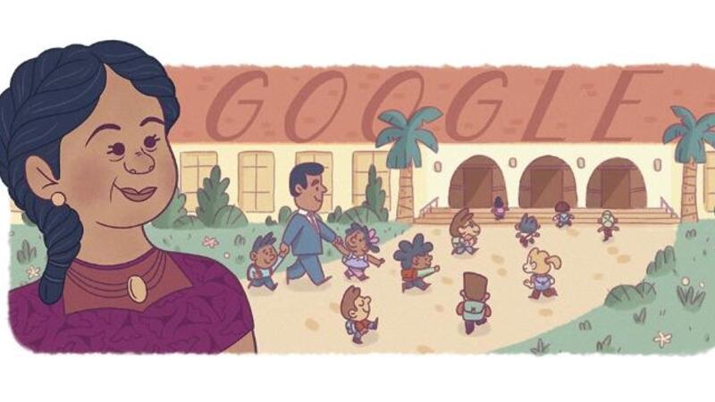 Google's homepage features artwork of Mendez watching children of all races attend school together.