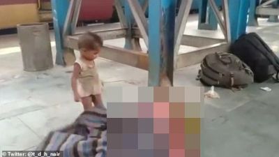 Heartbreaking video has revealed a toddler playing around their mother's body after she collapsed and died on a packed train in India amid coronavirus lockdown.