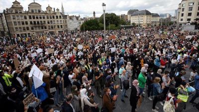 Respecting the rules of Belgian authorities, the demonstrators wore masks and tried to keep social distance.