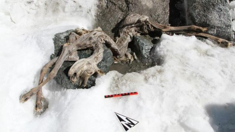 It's not clear how this chamois died - it had been preserved for centuries and only recently became visible as the ice receded.