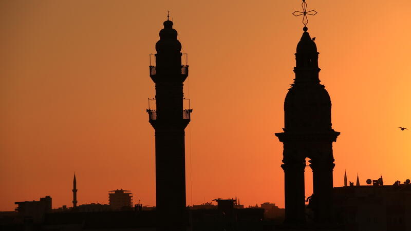 A minaret and bell tower silhouette (Shutterstock/ File Photo)