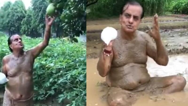 An Indian politician who filmed himself sitting in mud puddle and blowing a conch, claiming that it prevented coronavirus, has tested positive for the disease.