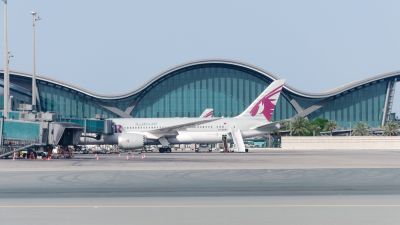 Aircraft airline Qatar at the airport. Preparing the aircraft for departure.(Shutterstock/ File Photo)
