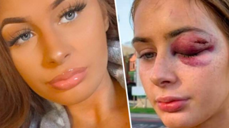 College student Gabrielle said: 'They kept harassing us. I was saying to [my friend] Kyle: "Let's go". Then he hit me - he fully knocked me out.