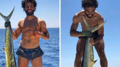 The footballer, dubbed the Egyptian king, posted images of himself on Tuesday to social media on a boat with several freshly caught exotic fish off the coast of the Rea Sea resort town of El-Gouna.