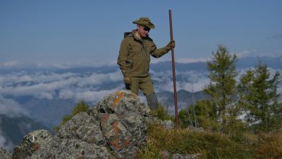 This time around, Putin was joined by his defence minister Sergei Shoigu as they traversed the vast Taiga forest, taking in the mountains with binoculars and foraging for mushrooms and berries.