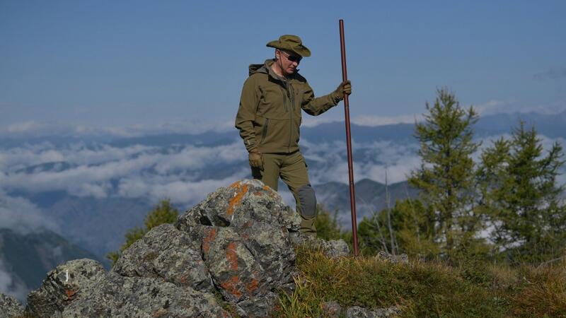 The president's macho jaunts are renowned for displays of vigour, including riding shirtless on horseback in 2009 and showing off his butterfly stroke in a frigid lake in 2017.