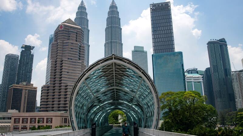 A man wears a facemask, amid fears over the spread of the COVID-19 novel coronavirus, at Saloma Link Bridge in Kuala Lumpur on March 12, 2020. Mohd RASFAN / AFP