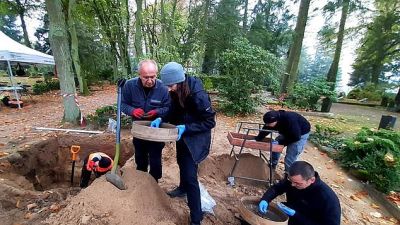 Nine urns and two metal plaques were uncovered at the cemetery. It is believed they contain the remains of Polish women who had been killed at a site near Ravensbruck village, which had served as the base for a German concentration camp in 1939 to 1945.