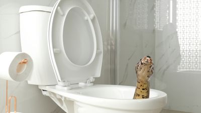 Animal handlers arrived at the two-storey home and began searching for the snake, which was still coiled up in the toilet bowl.
