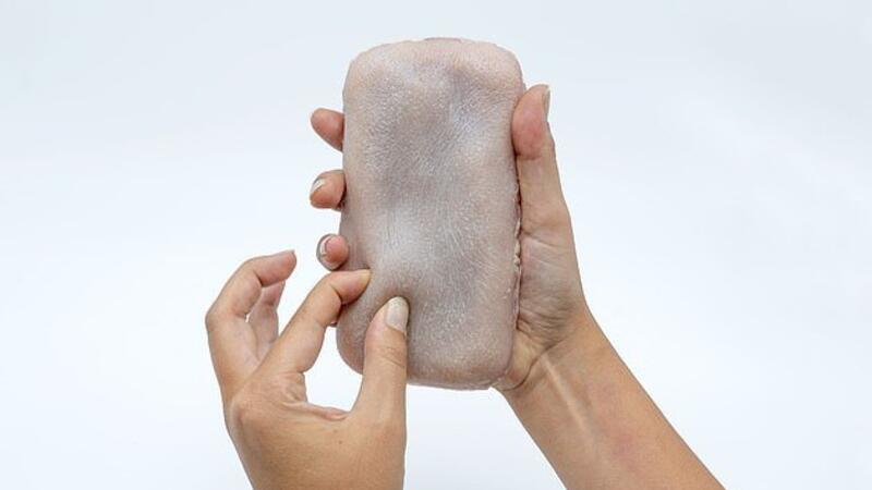 The prototype, which has been designed to look like and mimic human skin, responds to different forms of human contact such as tickling, caressing and pinching.