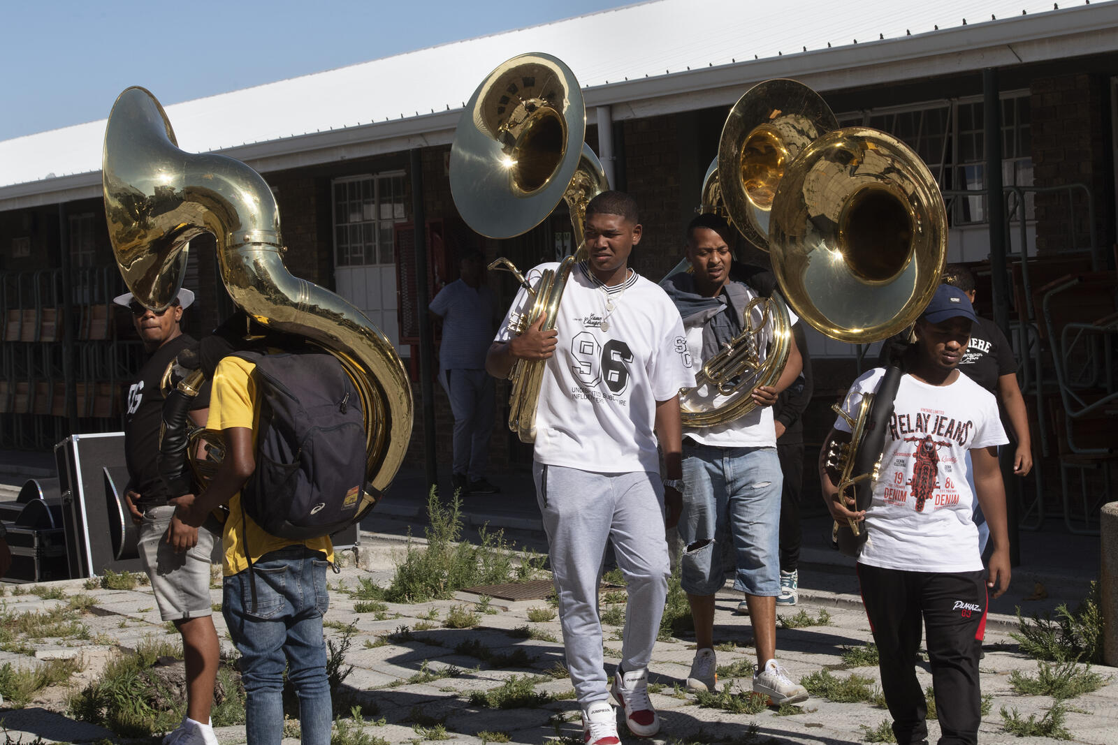 Dressed in the band's distinctive green and white colours, Buzic bounced from one leg to the other as brass players rehearsed outdoors at a school in Mitchells Plain, near Cape Town, on New Year's Eve.
