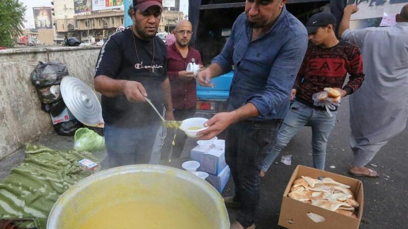 Iraqis are used to communal meals and many volunteer food. Every year, during the annual Shiite religious commemoration known as Arbaeen, volunteers prepare food for pilgrims making their way to the city of Karbala. Shortly after the protests started Oct. 1, volunteers began setting up similar tents to cook and distribute traditional Iraqi dishes for the protesters in and around Tahrir Square.