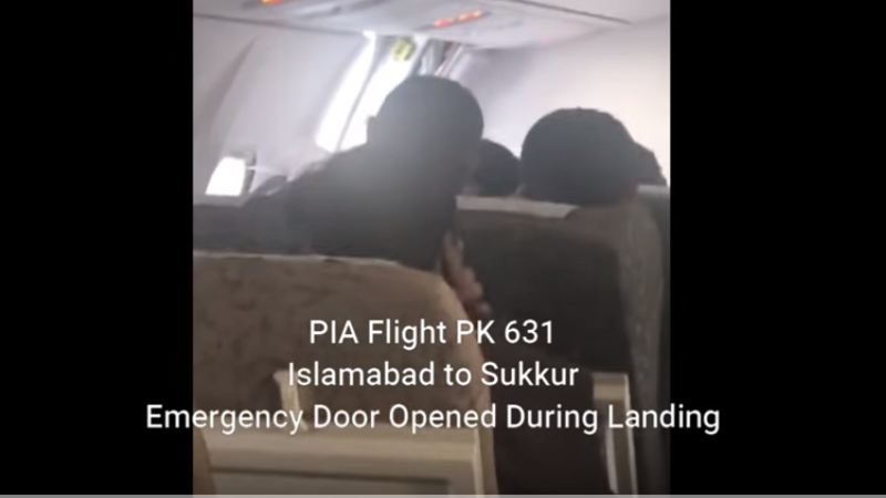 Flyers aboard the Pakistan International Airlines (PIA) plane experienced a terrifying moment while landing when the emergency exit door flung open.