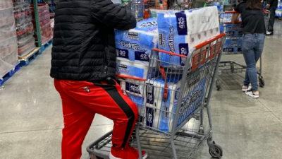 Across the US, throngs of patrons are tearing through supermarket aisles, loading toilet paper into overfull shopping carts.