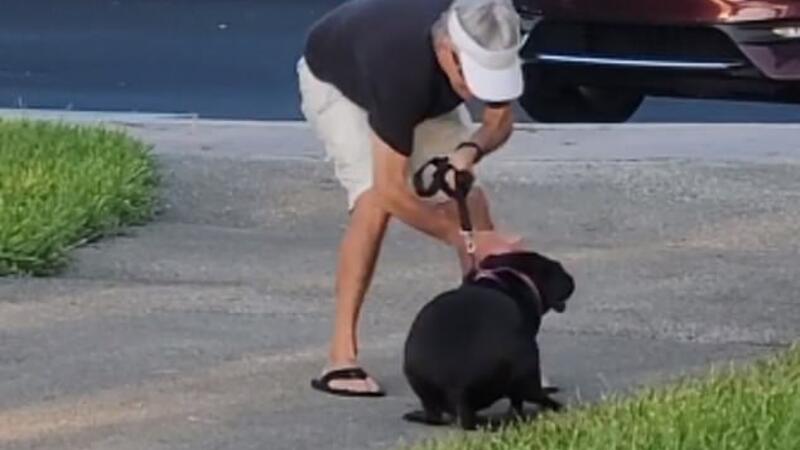She said the man had hit the dog with far more violence when he first found her, and she was shocked to catch him on camera hitting the animal a second time, walking away.