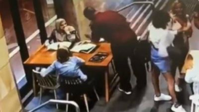 The horrifying ordeal, captured by CCTV, saw 31-year-old Rana Elasmar assaulted by a man who approached her as she sat with a group of friends at Bay Vista cafe on Church Street, Parramatta, at 10.30 pm.