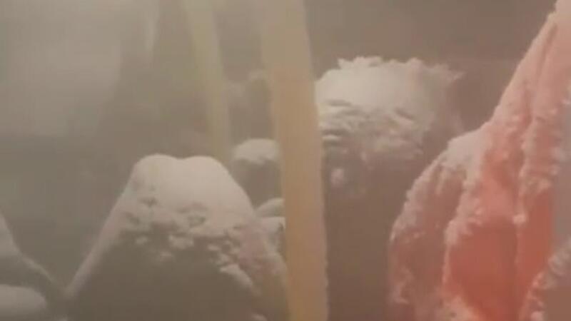 Passengers filmed themselves getting snowed on inside the vehicle after it broke down in bone-chilling temperatures of -15F (-26C) with some windows suck open.