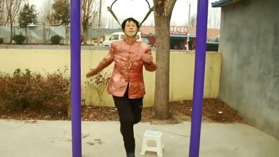Images and videos show participants, most of them pensioners, swinging their bodies back and forth on improvised cervical traction devices attached to high bars at public parks.