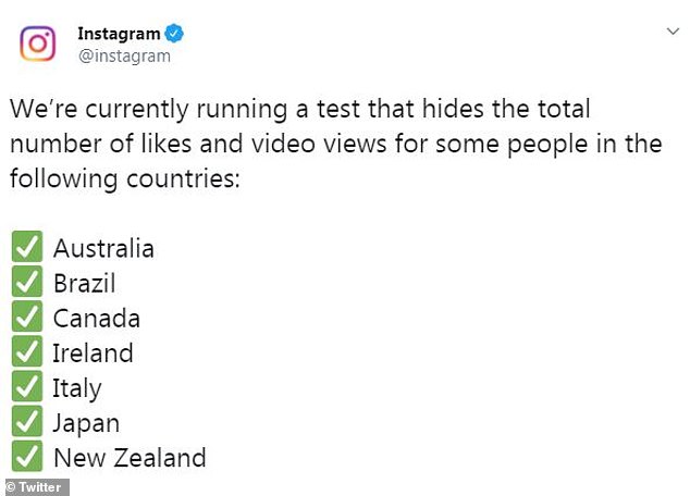'We are now rolling the test out to Australia so we can learn more about how this can benefit people's experiences on Instagram, and whether this change can help people focus less on likes and more on telling their story.'