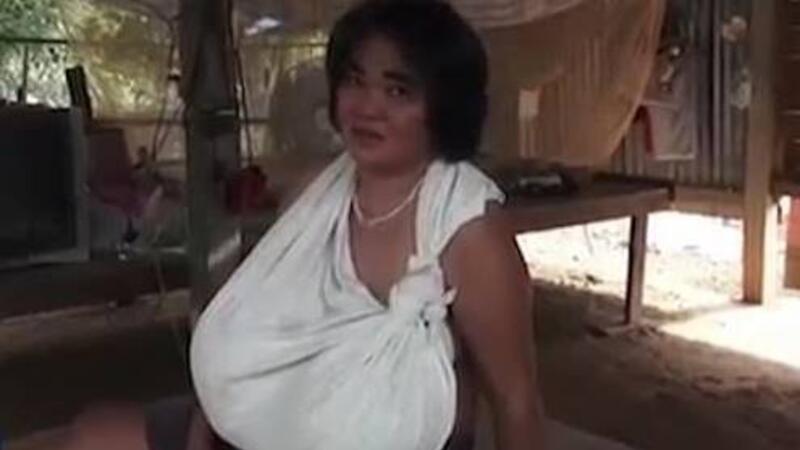 She's currently hobbling around on wooden crutches and the weight of her breasts puts constant pressure on her spine.