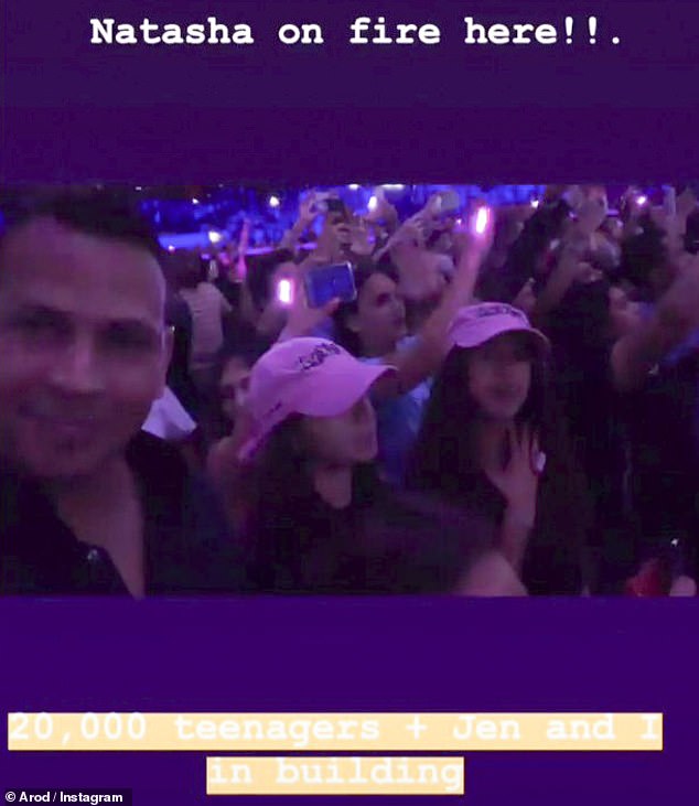'Natasha on fire here!!' he wrote, followed by, '20,000 teenagers + Jen and I in building.'