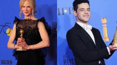Shortly after winning Best Actor for Bohemian Rhapsody, Rami Malek rushed back onto the Golden Globes stage when his movie won Best Picture, which lead to an awkward moment with presenter Nicole Kidman.