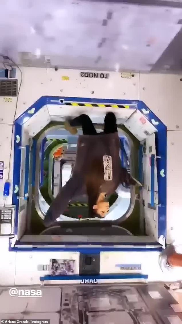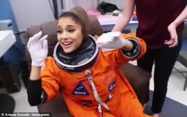 During her time at the Johnson Space Center, Grande donned an orange spacesuit, floated in a gravity simulator, toured the state-of-the-art facility and posed for pictures with employees.