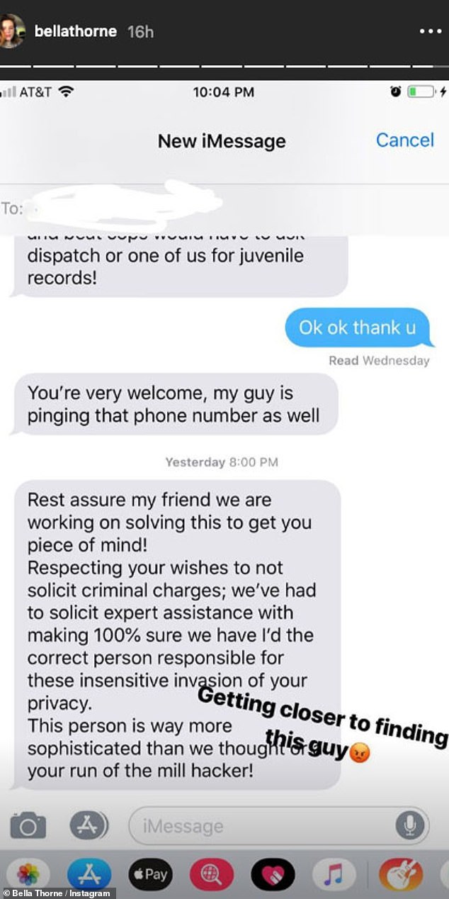 Bella thorne gave an update on the search for the hacker who threatened to leak nude photos of the starlet that were stolen from her private collection.