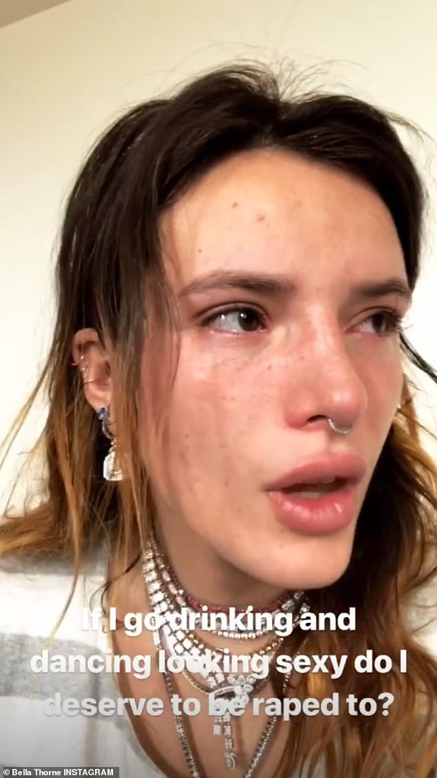 'If I go drinking and dancing looking sexy do I deserve to be raped too?' demanded Bella in a caption written across her video.