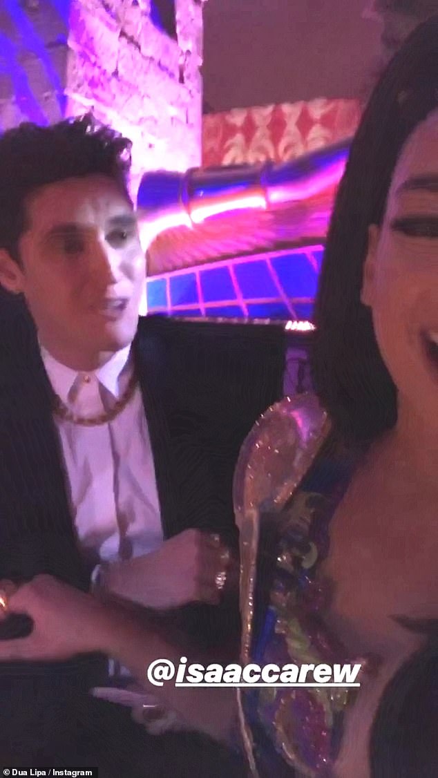 She broke the no-social-media ban inside the bash to show the couple together, while Isaac preened his lady love.