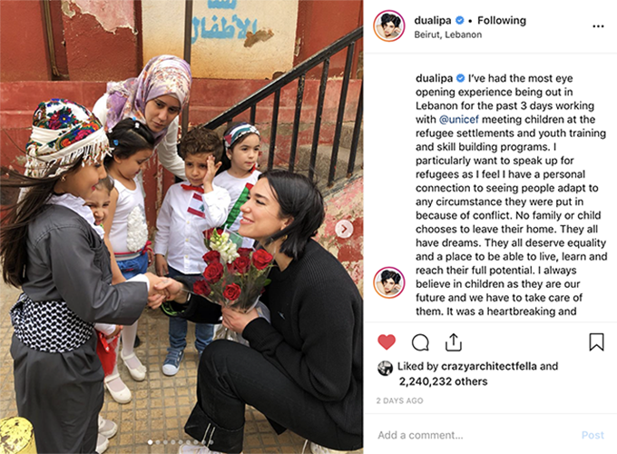 The “One Kiss” singer — who is no stranger to the Middle East, having performed in Abu Dhabi in February 2018 — paid tribute to the strength of the children she met.