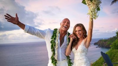 For the wedding dinner pics, The Rock changed out of his stylish all-white ensemble he wore for the ceremony and went with a more casual Hawaii-style shirt, white pants and flip-flops.