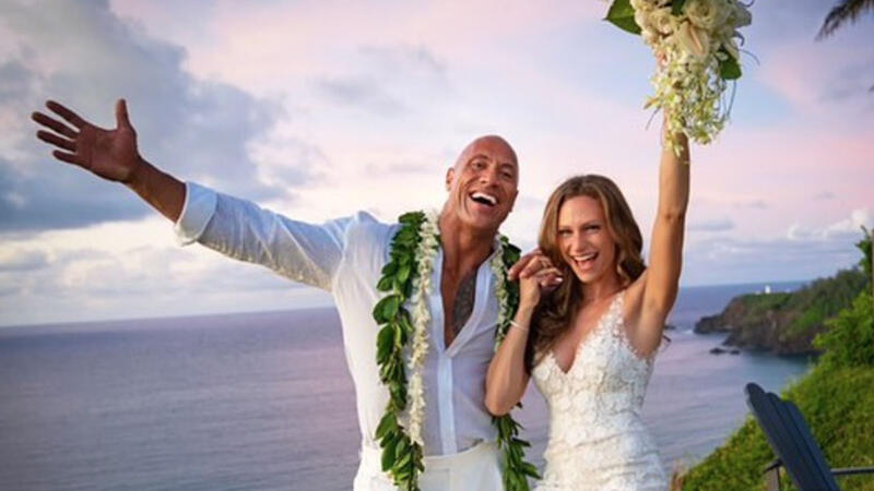 Johnson then went public with the news the following day on Instagram by sharing a series of stunning pictures of the bride and groom posing in front of a picturesque sunset in Hawaii.