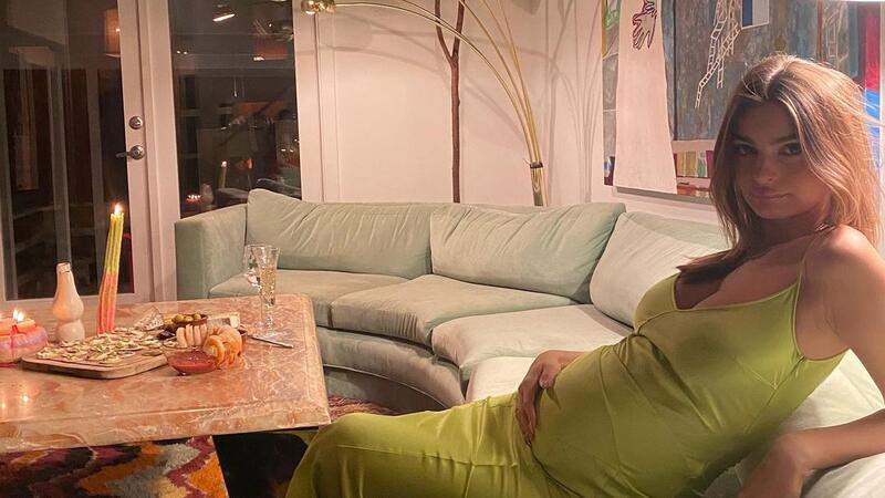 And Emily Ratajkowski was positively glowing as she tucked away for a night in to celebrate New Year's Eve from the comfort of her own Los Angeles home.