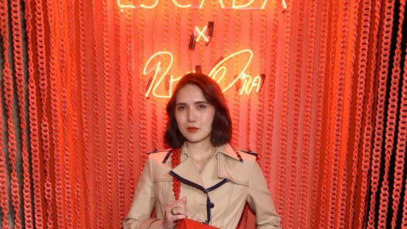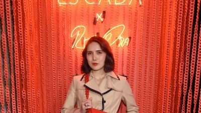 On the brand’s Instagram account, Ora was seen wearing a white double-breasted suit with gold buttons. Escada also introduced a red envelope-shaped bag that Ora added to her outfit.