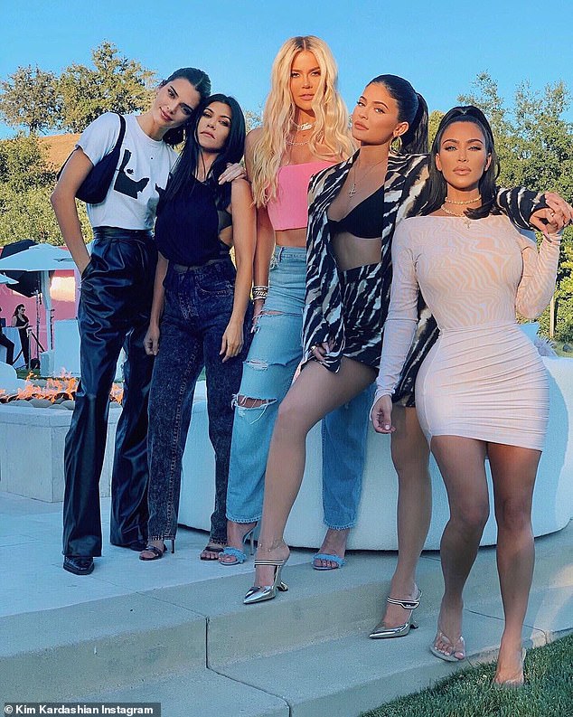 All five women looked fantastic posing at Khloe's birthday last Thursday as the Good American designer captioned the pic: 'Nothing like a photo with ALL my sisters! You guys have no idea how hard it is to wrangle everyone for one photo and to make sure everybody is staring at the camera. The photo approval is a whole other story.'