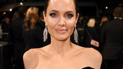 Mother-of-six Angelina amped up the glamour, adding glittering Graff chandelier earrings - featuring 32.98 carats of diamonds - to her custom Ralph & Russo ensemble, which included a matching velvet wrap and vertiginous black heels.