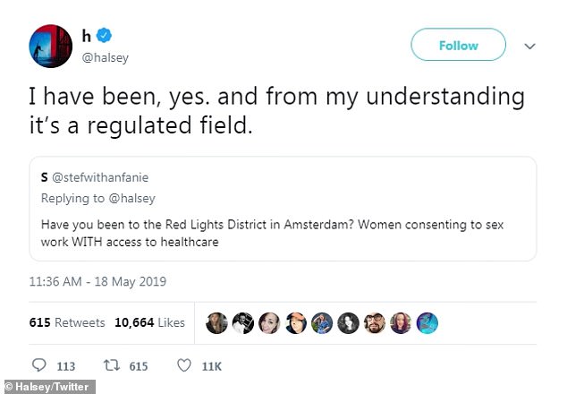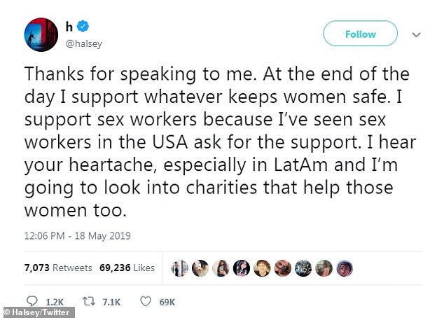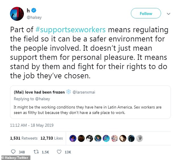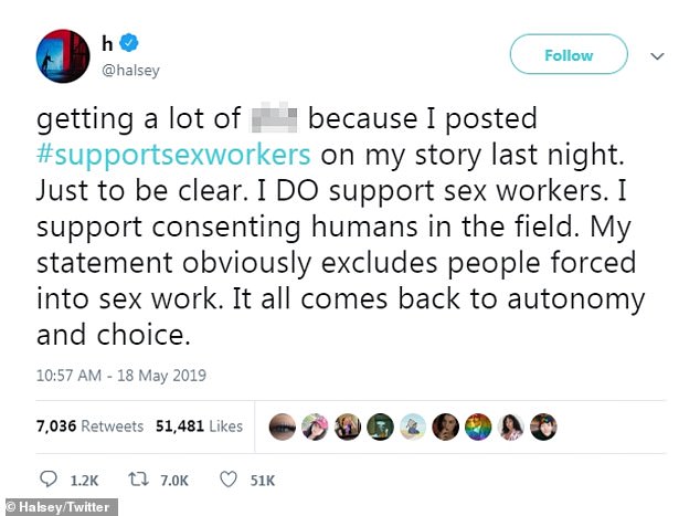 Speaking out: Halsey took to Twitter and Instagram over the weekend to show her support for sex workers and start a conversation about their field