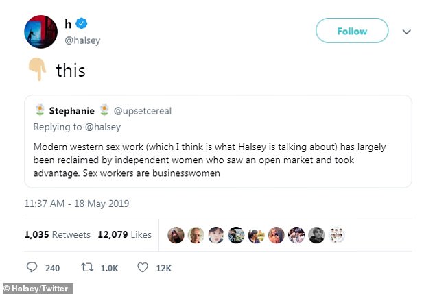 And Halsey did just that on Saturday, opening up the conversation about sex workers on her social media accounts.