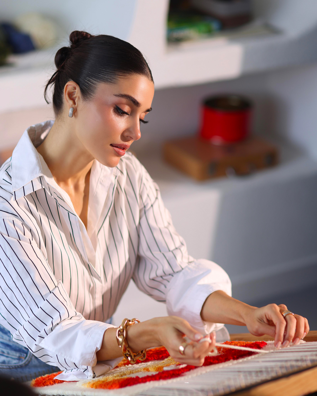 The event also showed off a different side of Hande's talent. The jewelry brand just shared some of her woven works as part of their global marketing. People all over the world have praised Erçel for bringing traditional Turkish arts to their attention. She studied Carpet and Rug Design at Mimar Sinan University.