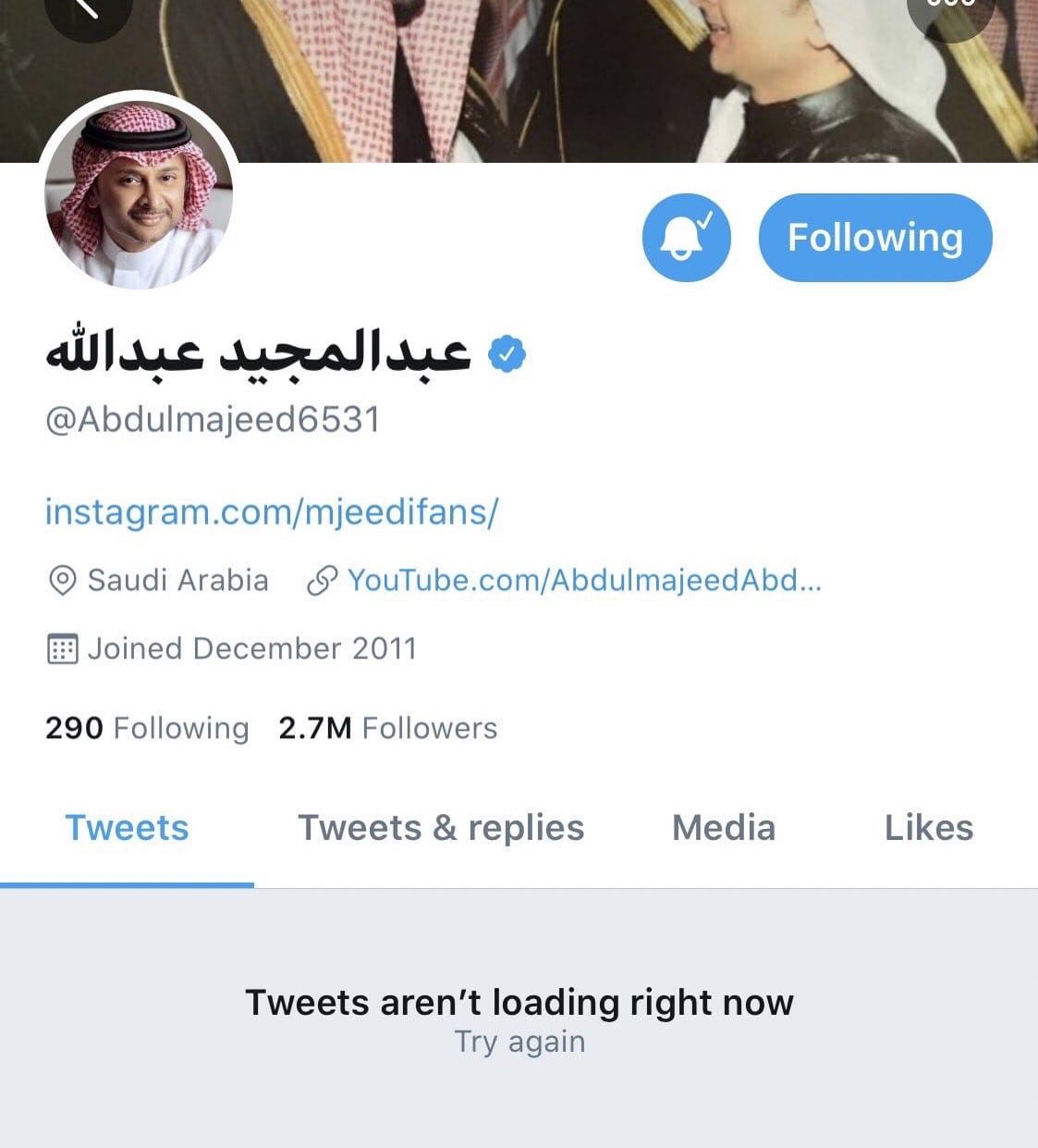 Saudi singer Abdulmajeed Abdullah closed his Twitter account after some users circulated his responses to some offensive tweets by unknown accounts.