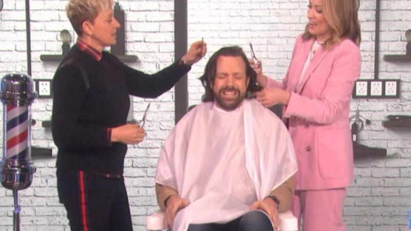 Olivia Wilde and Ellen DeGeneres gave Jason Sudeikis a long-awaited haircut.