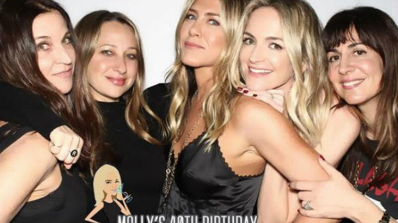 Jennifer Aniston attended Molly McNearney's birthday party Sunday in the wake of her recent split.