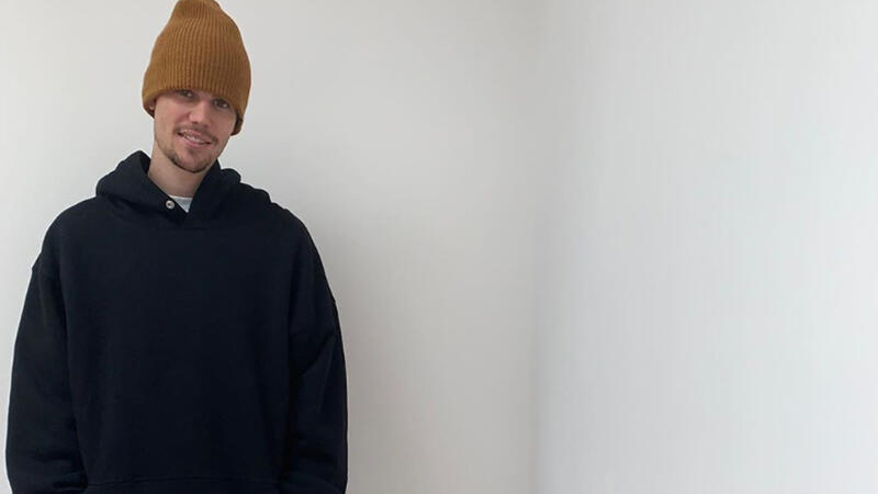 The 'Love Yourself' hitmaker was seen carrying the giant framed shirtless photo - in which he is posing in his Calvin Klein underwear with his hand down his pants - to Scooter Braun's 38th birthday celebration at the San Vicente Bungalows in West Hollywood on Tuesday (06.18.19) evening.