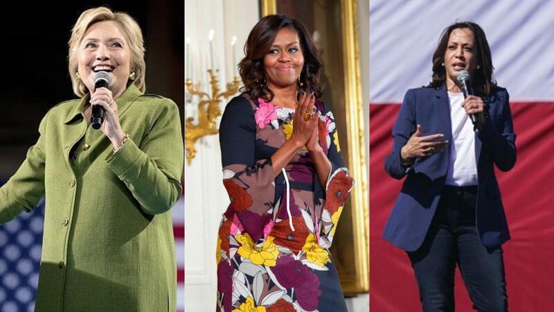 Harris' 'bipartisan' color choice set the tone of the day, with former First Ladies Michelle Obama and Hillary Clinton also donning shades of the royal hue.