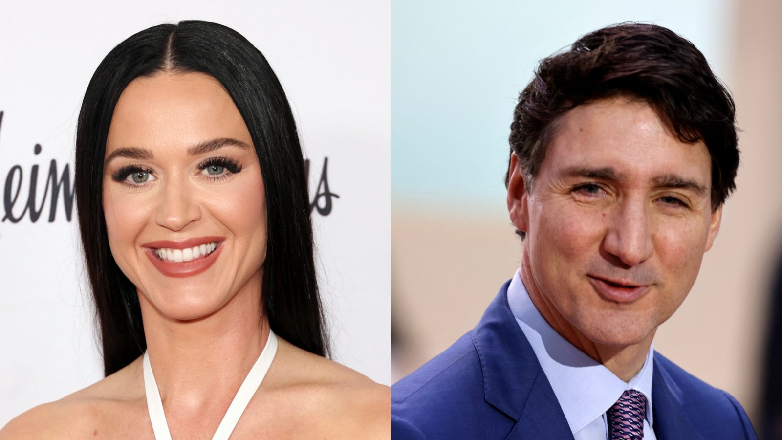 Katy Perry (Photo by Monica Schipper / AFP) / Justin Trudeau (Photo by Ludovic MARIN / AFP)