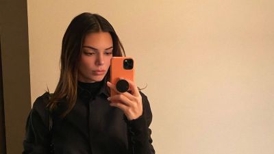 Kendall looked great in a cream sweater from Madison Margiela and trouser from Musier Paris along with brown shoes.
