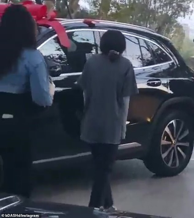 Then she was brought out to what appeared to be the front of the home in order to be presented with her luxurious Mercedes.